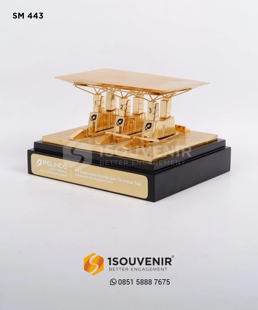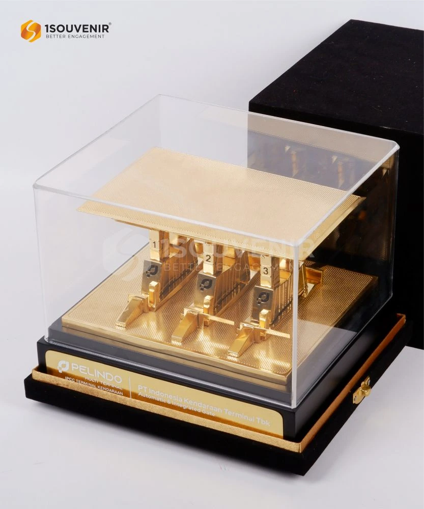 Pelindo constructed a gate that serves as the main entrance to the company, which has become one of its iconic symbols. This inspired the creation of the Pelindo Gate Miniature. Made from metal with a gold finish, this iconic miniature offers a premium impression when presented to business partners. It helps strengthen business relationships through a thoughtful gesture.