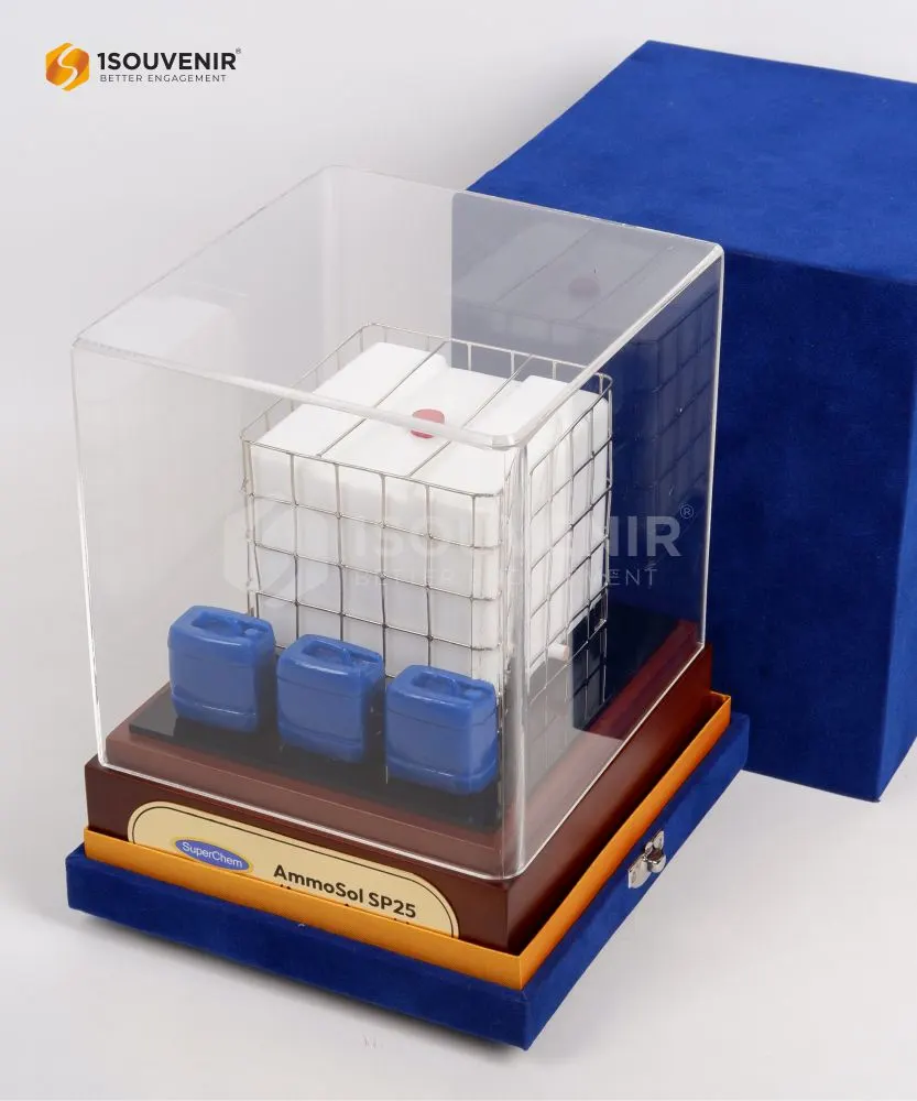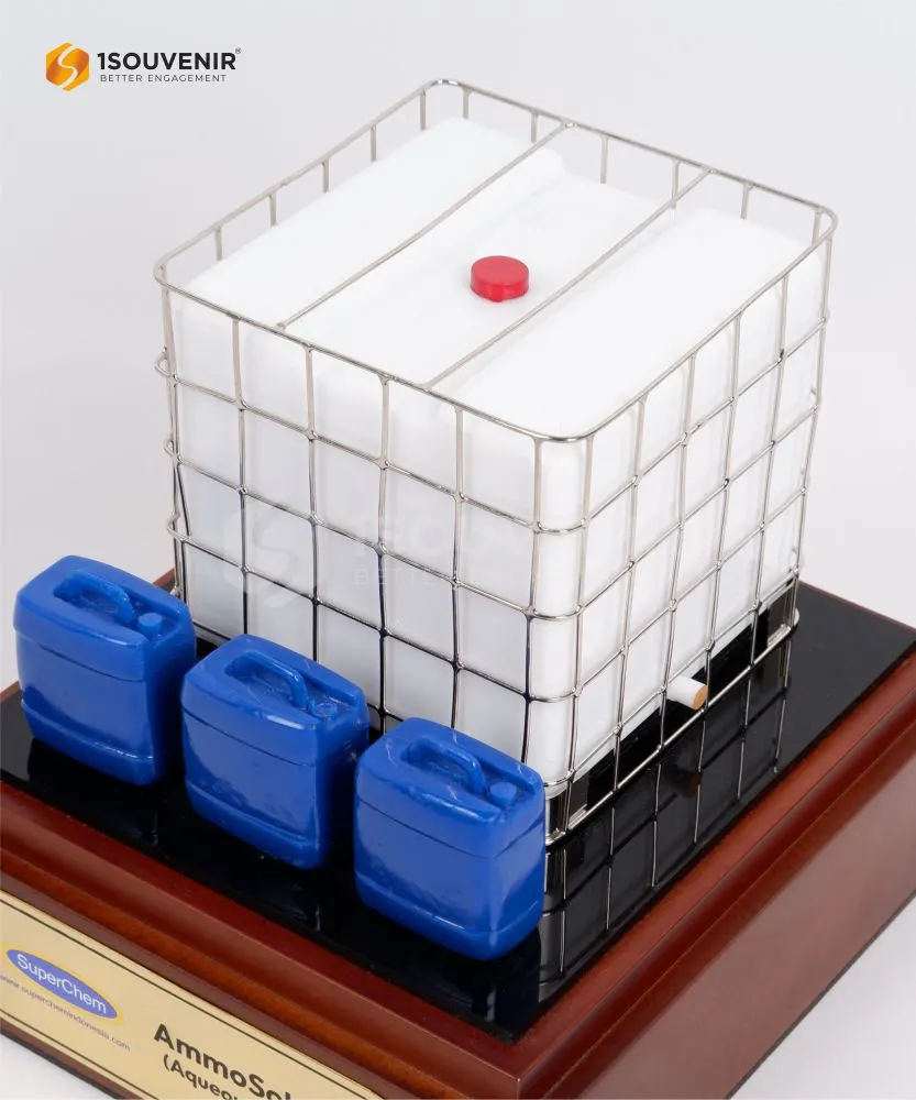 The IBC Kempu AmmoSol SP25 Bandung Jerrycan Miniature is an eye-catching corporate keepsake. Crafted from a combination of resin and acrylic, enhanced with wire and wood elements, this souvenir miniature is designed with high visual precision. As a result, companies can confidently use it to strengthen relationships with business partners.