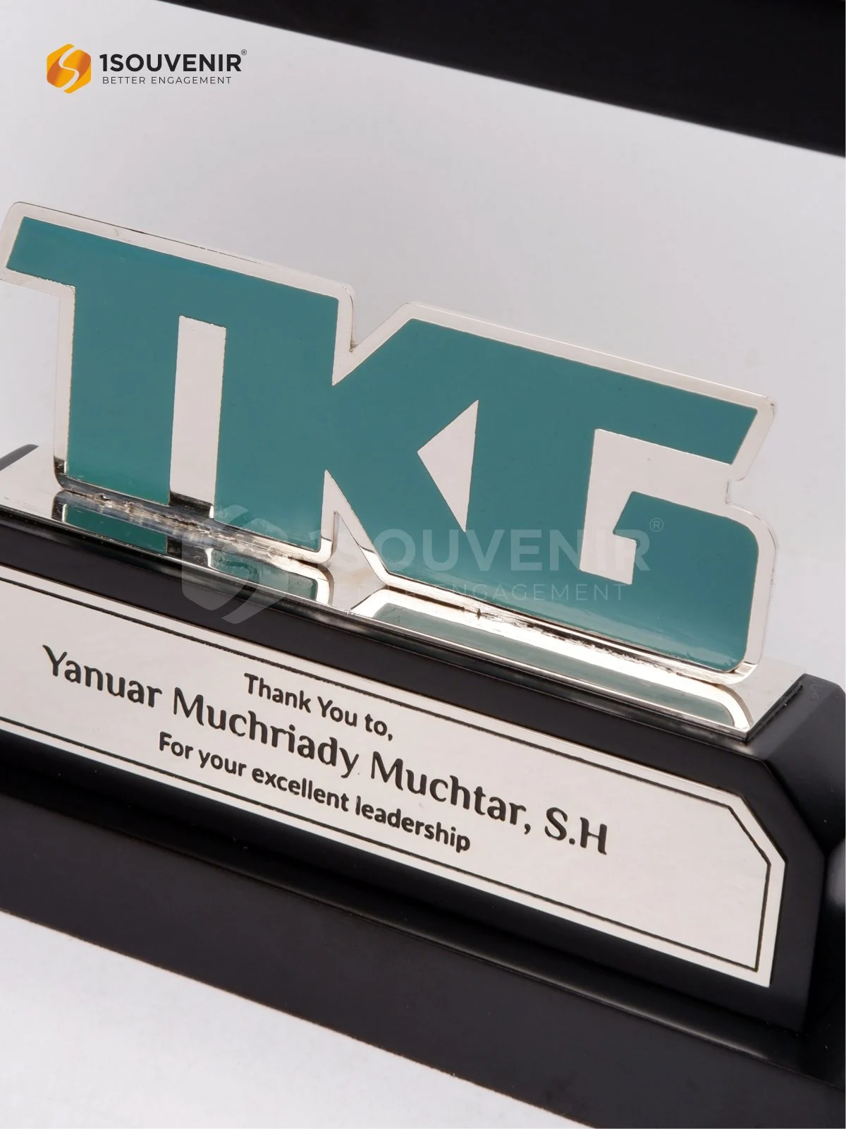 The TKG Leadership Appreciation plaque is designed with a modern frame appearance and a prominently displayed logo, creating an elegant yet professional impression. Its message of appreciation is clearly expressed, delivering emotional value to the recipient.