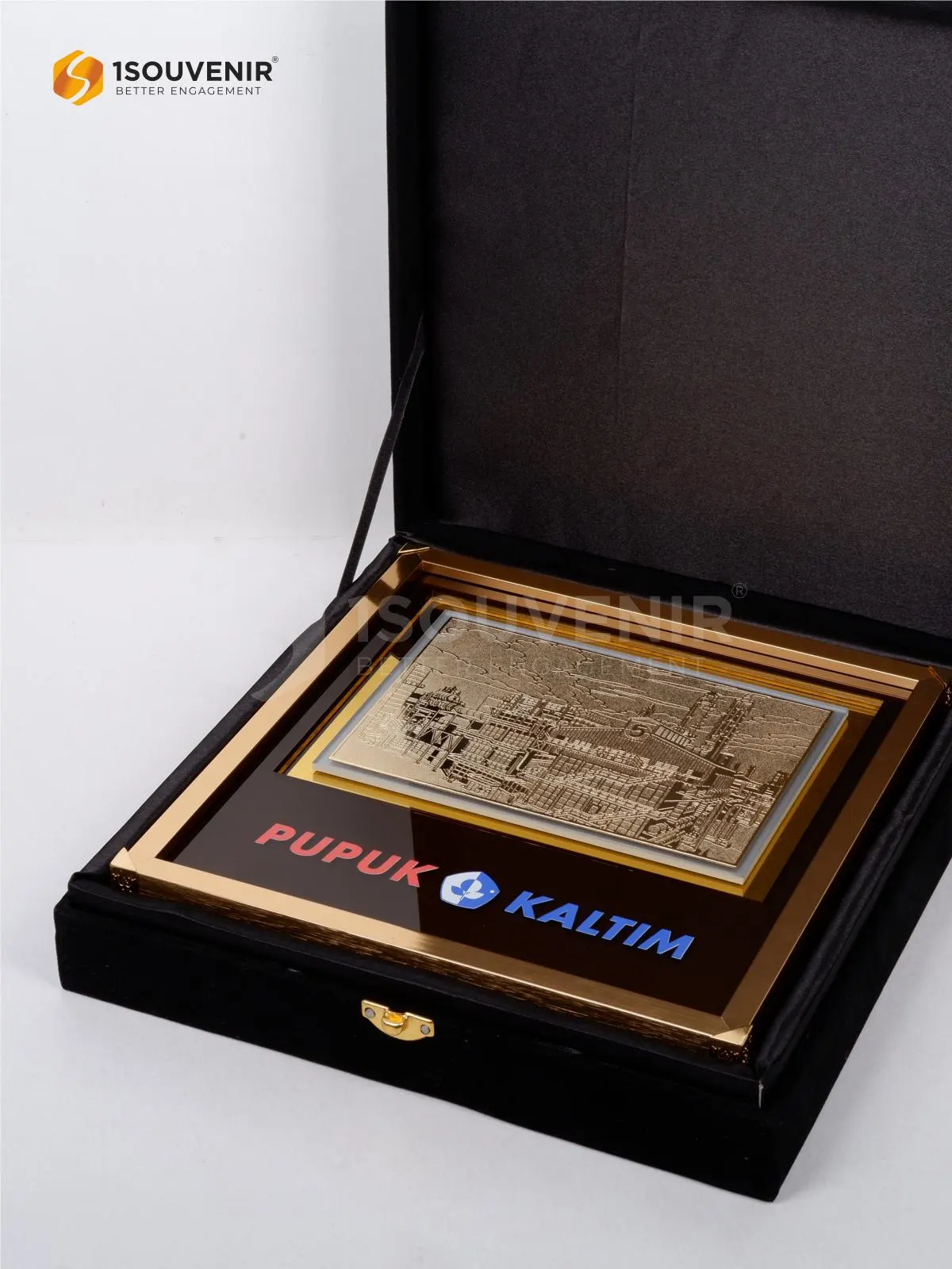 Metal Frame Plaque of the Factory Building A Commemorative Keepsake from Pupuk Kaltim