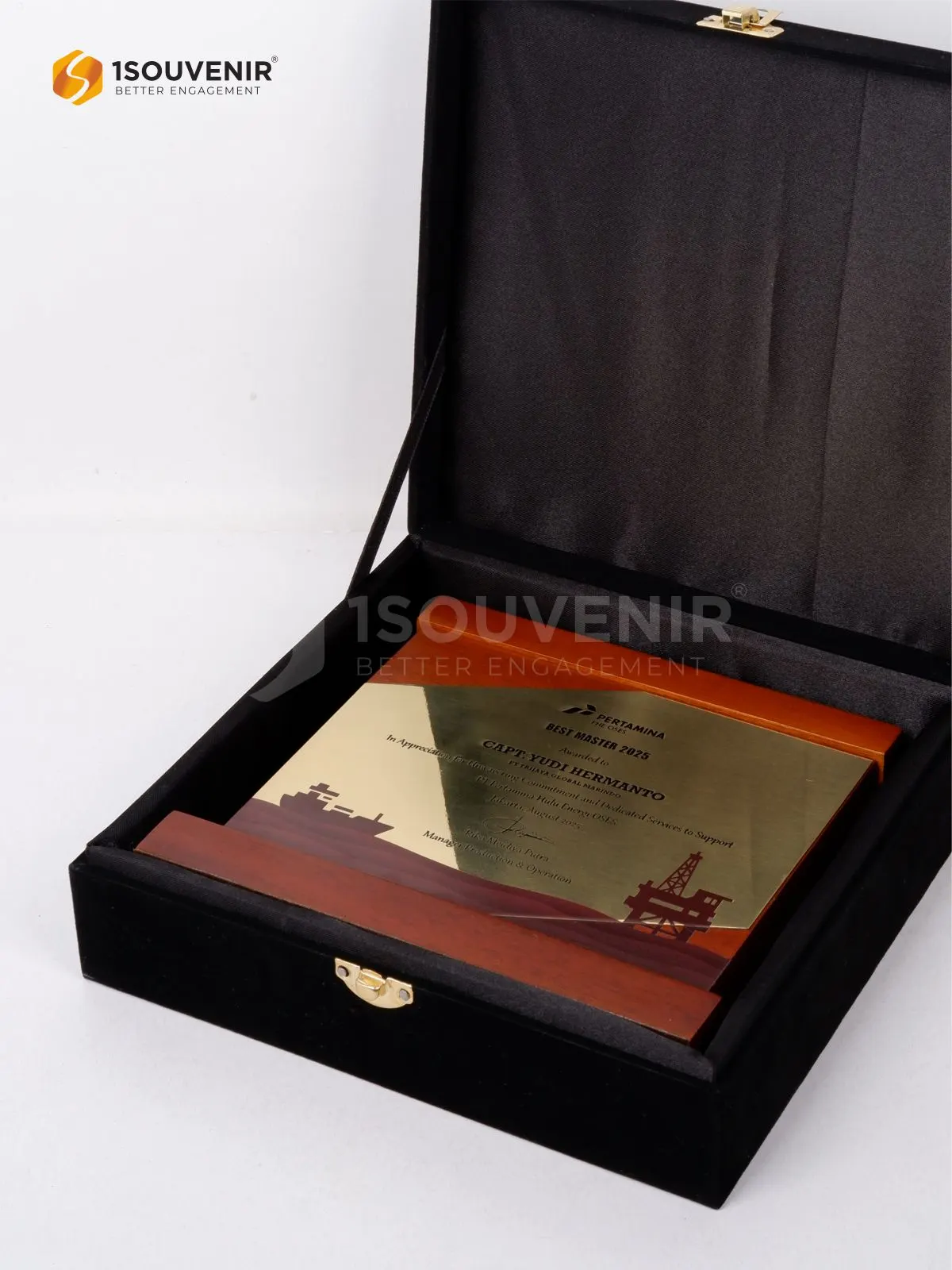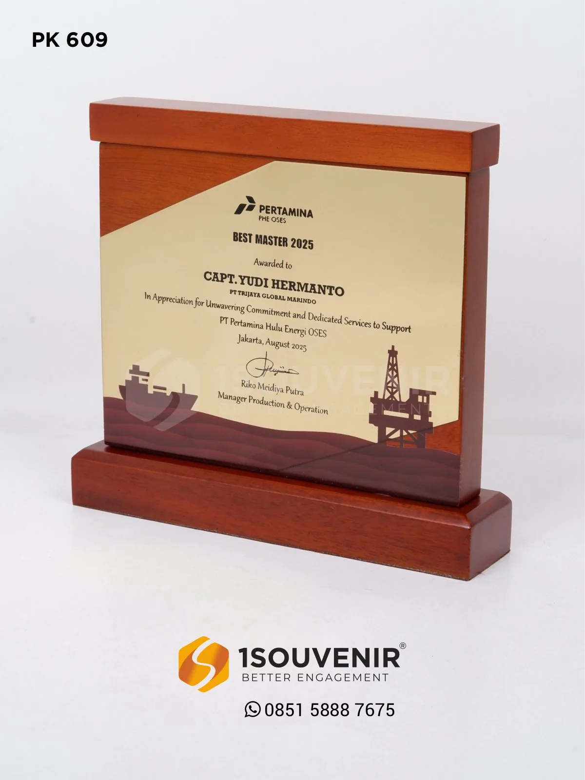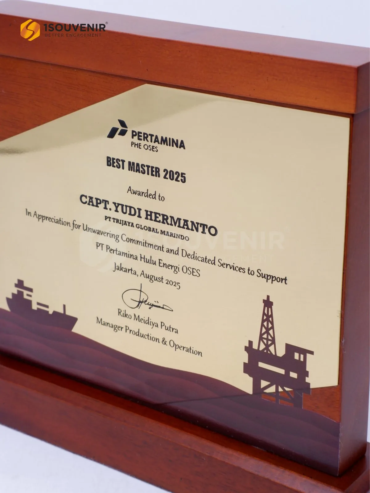 Wooden Plaque Award Best Master 2025 from Pertamina PHE OSES for PT Trijaya Global Marindo