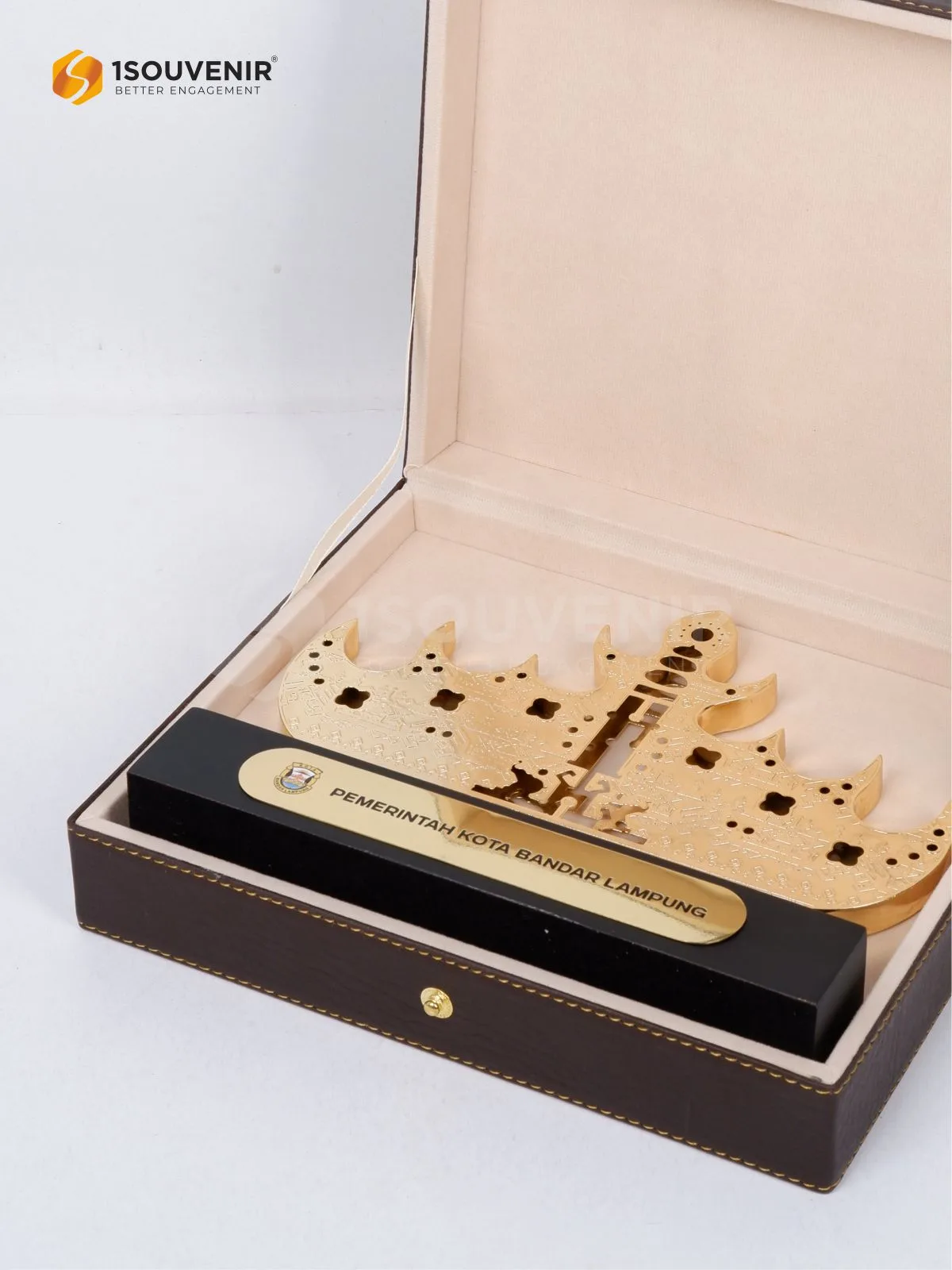 Commemorative Metal Plaque of Mahkota Siger, a Distinctive Souvenir from the Bandar Lampung City Government