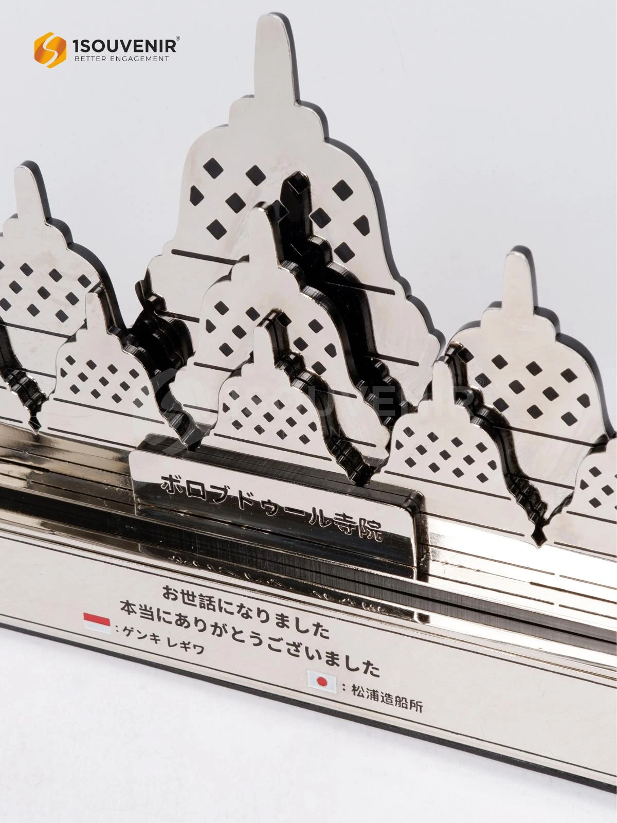 The message of appreciation written in Japanese on this piece reflects the warm relationship between two nations, Indonesia and Japan. A simple sentence such as “Thank you for your assistance and cooperation” carries a profound meaning, expressing sincere gratitude for the support that has been given. The inclusion of the name Borobudur adds a strong sense of culture and friendship.