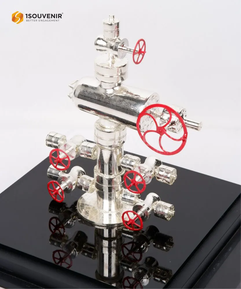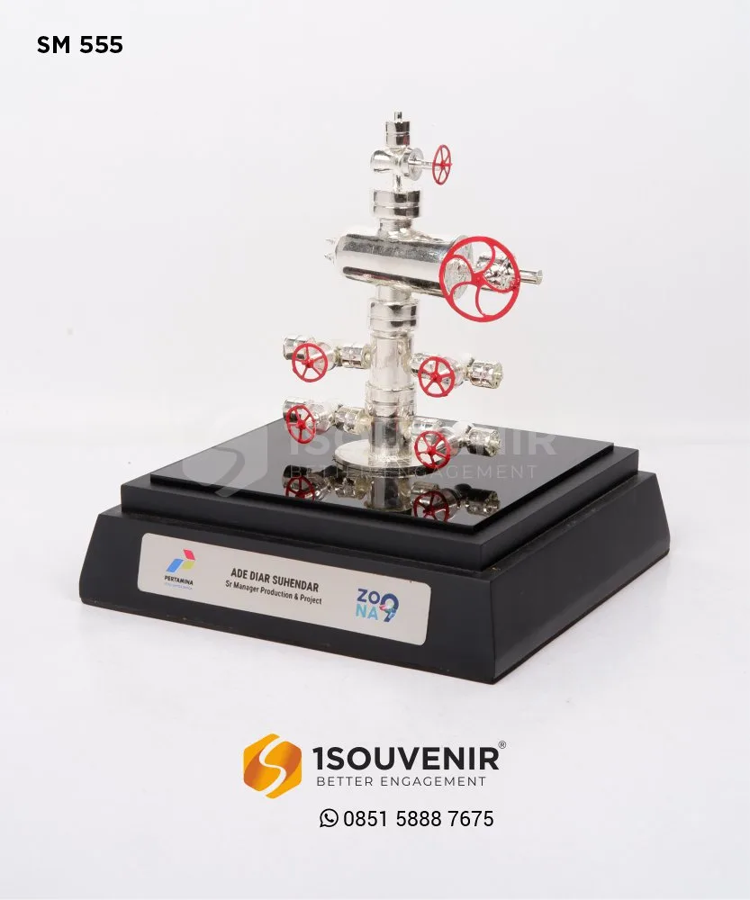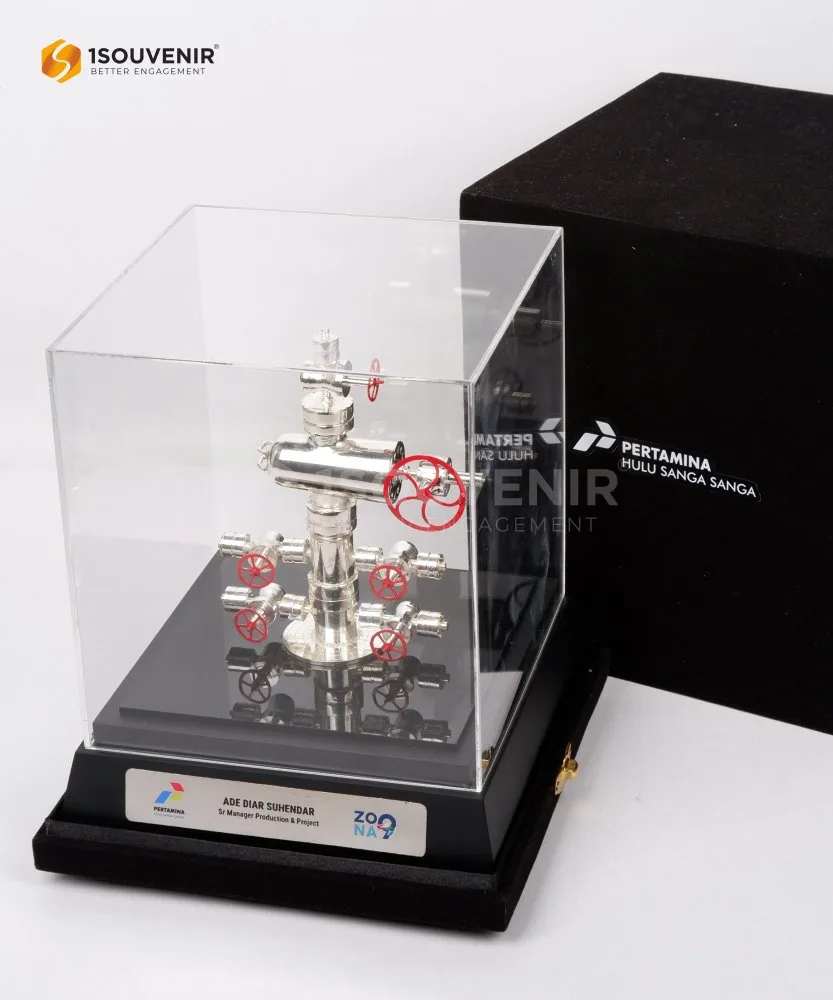 This Pertamina Hulu Sanga Sanga miniature was specially crafted as a corporate token of appreciation for outstanding contributions. The souvenir miniature visualizes detailed oil and gas equipment, symbolizing hard work, innovation, and an irreplaceable spirit of teamwork.
