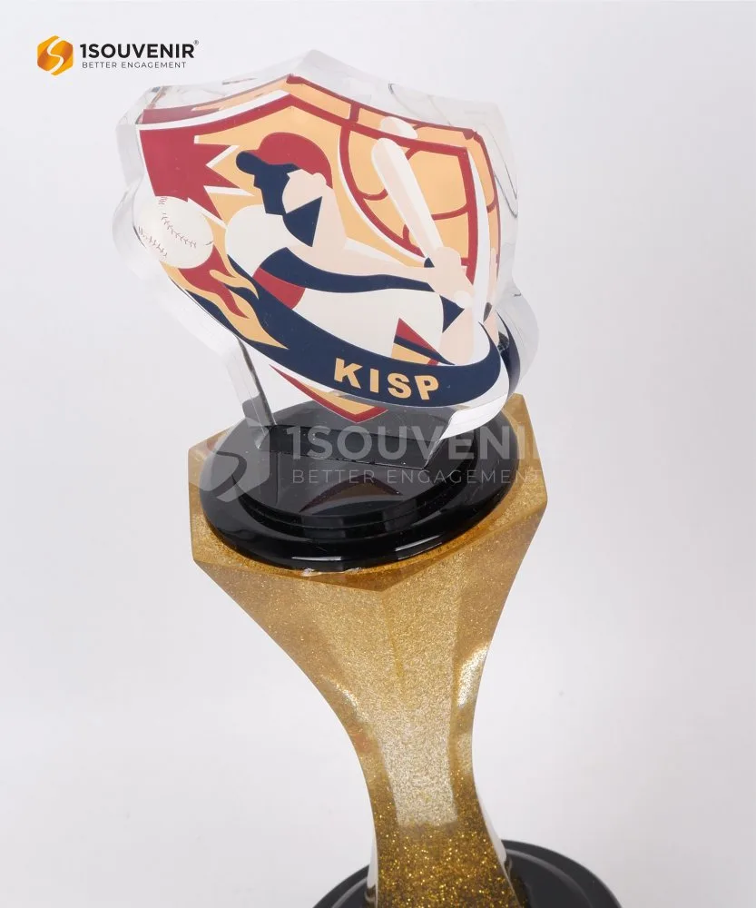 The Kinderstation Invitational Slowpitch trophy is made from a combination of resin and acrylic materials, with a distinctive design that reflects the strength and elegance of the baseball sport. The trophy is crafted with elegant details, making it a symbol of pride for the winners.